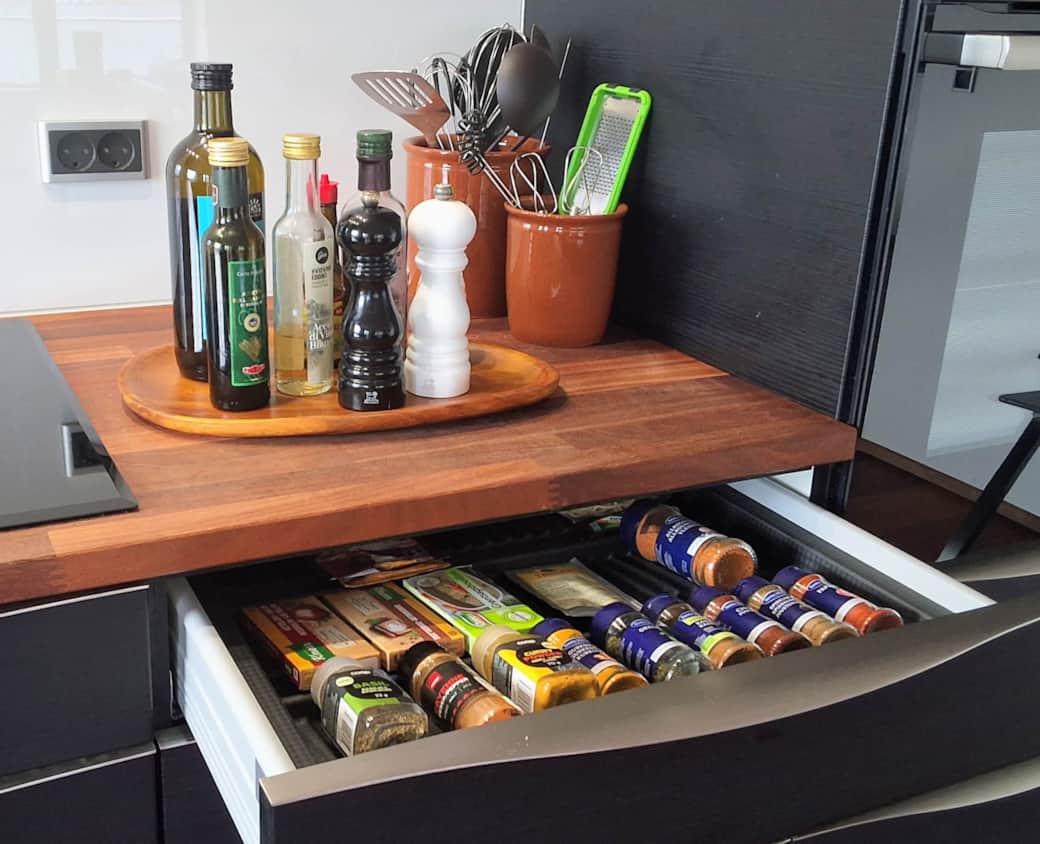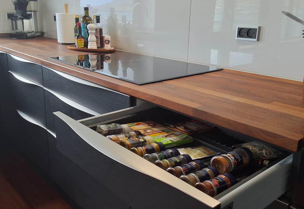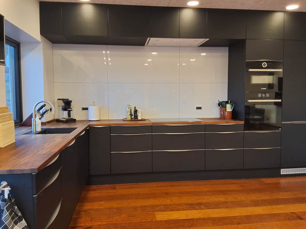 Det moderne køkken er indrettet med fokus på både funktionalitet og design. Her finder du en Quooker, der giver kogende vand direkte fra hanen, samt indbygningsovn og mikroovn til nem madlavning. Den indbyggede kogeplade og det fjernbetjente loftemfang sikrer en elegant og praktisk oplevelse, mens integreret køleskab, fryser og opvaskemaskine gør hverdagen enkel. Alt er diskret indbygget, så køkkenet fremstår stilrent og indbydende. Det er et rum, hvor madlavning bliver en fornøjelse, og hvor gæster kan samles om gode måltider.