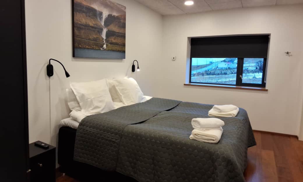 4 sovirúms rúmliga íbúðin við liftu er vælegnað til familjur og bólkar upp til 9 fólk, við møguleika fyri eyka uppreiðing.
